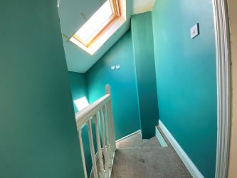 Fitted kitchen units. Tiled floor. Velux roof window.