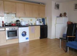 Sittingroom/Kitchen – 4.89 x 5.64 with fitted units. Double doors to balcony