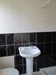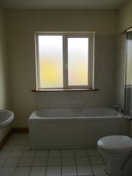 With bath, w.c, w.h.b. Tiled floor. Part tiled walls.